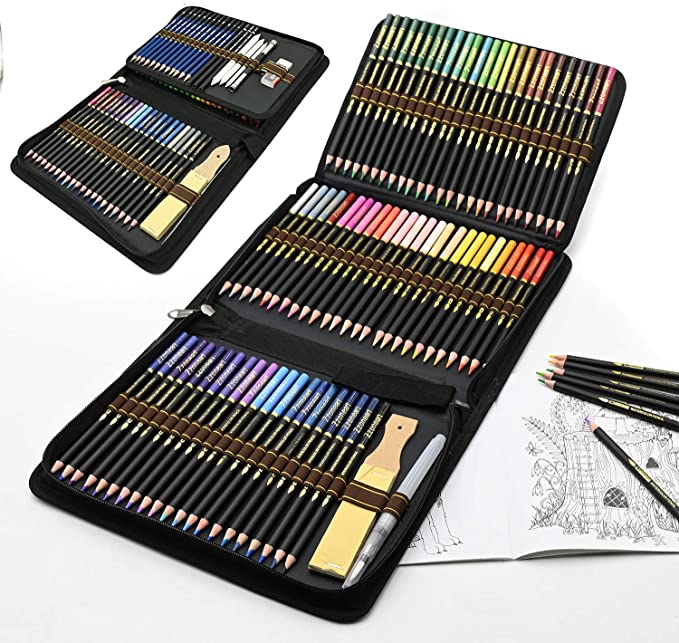 Este juego de lápices de arte profesional viene con 96 piezas, que incluyen estuche, 72 lápices de acuarela, 12 lápices de dibujo, 3 lápices de carbón, 1 borrador, 1 sacapuntas, 1 extensor de lápiz, 1 papel de lija, 1 línea de gancho. Bolígrafo y 3 tocones de papel.